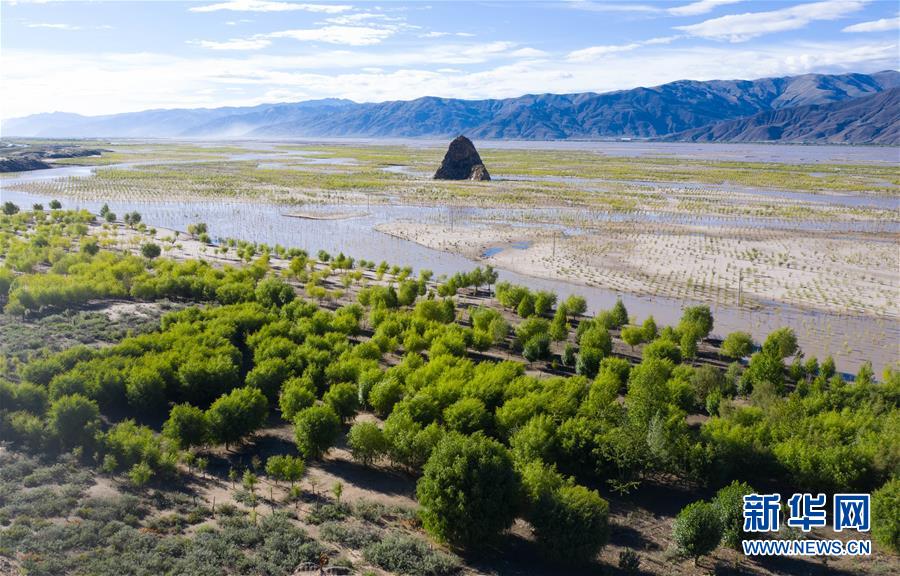 西藏雅魯藏布江兩岸栽植的樹木(7月16日無人機(jī)拍攝)。新華社記者普布扎西攝