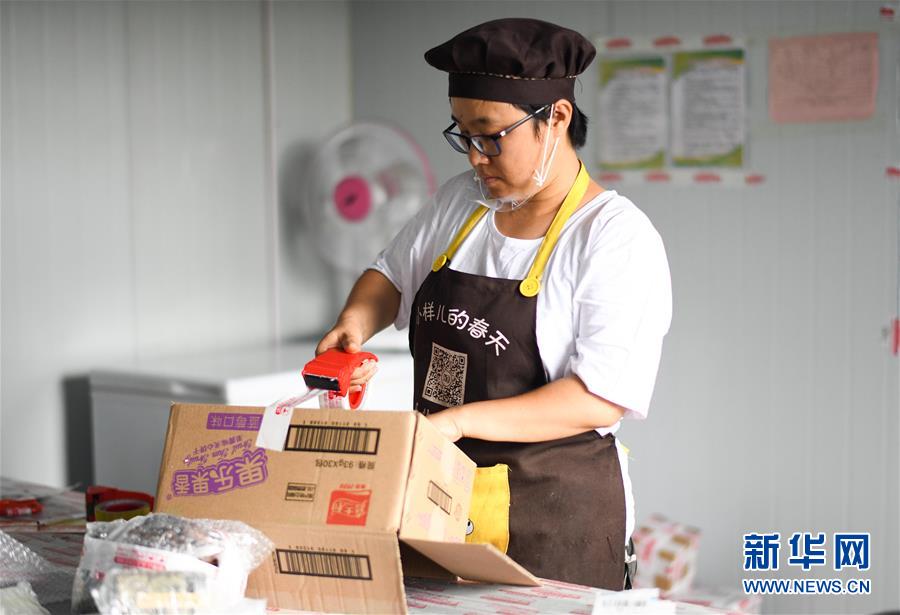 李琛璨在打包車(chē)間中給客戶打包發(fā)貨(8月30日攝)。 新華社記者 王松 攝