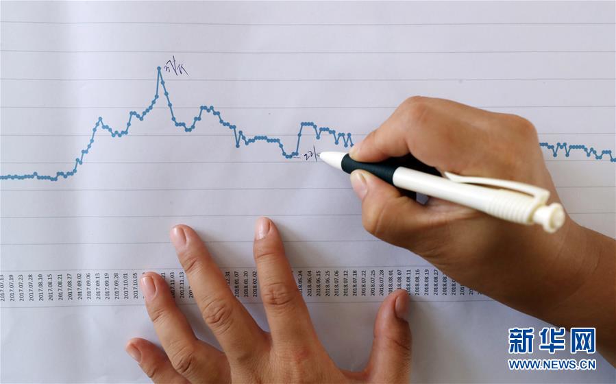 郭旗根據(jù)多年銷(xiāo)售情況,繪制了多寶魚(yú)的銷(xiāo)售價(jià)格變化圖(9月5日攝)。 新華社記者 楊青 攝