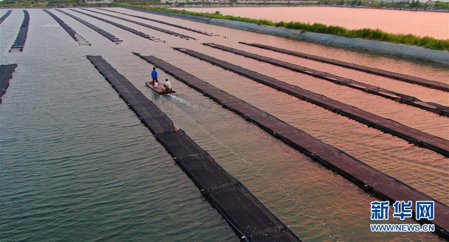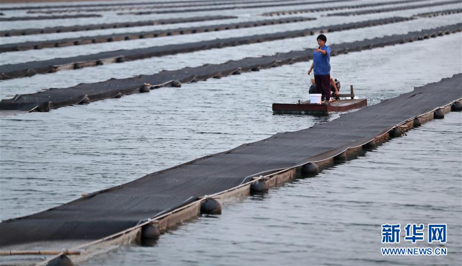郭旗在魚(yú)棚擦去濺在臉上的水滴(9月5日攝)。 新華社記者 楊青 攝