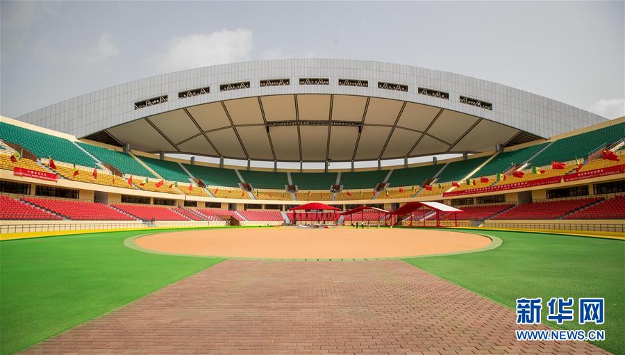 這是2018年7月18日在塞內(nèi)加爾首都達(dá)喀爾拍攝的競(jìng)技摔跤場(chǎng)內(nèi)景。2018年7月22日,象征中塞友誼的塞內(nèi)加爾競(jìng)技摔跤場(chǎng)正式移交。這座地標(biāo)性建筑面積約1.8萬(wàn)平方米,可同時(shí)容納2萬(wàn)名觀眾,是非洲首座現(xiàn)代化摔跤場(chǎng)。新華社記者呂帥攝