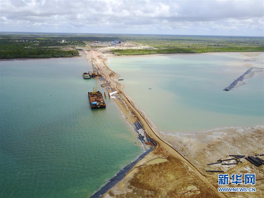 這是2017年5月10日在肯尼亞東北部曼達(dá)灣海域拍攝的拉穆港項(xiàng)目的引堤,引堤將大陸與人造陸地連在一起。2012年3月,肯尼亞聯(lián)合南蘇丹和埃塞俄比亞啟動(dòng)了“拉穆港-南蘇丹-埃塞俄比亞交通走廊”項(xiàng)目。項(xiàng)目包括鐵路、公路和石油管線等諸多組成部分,總投資額約250億美元。同年,中國(guó)交建從17家通過資格預(yù)審的國(guó)際公司中脫穎而出,獲得拉穆港項(xiàng)目的承建權(quán)。新華社記者潘思危攝