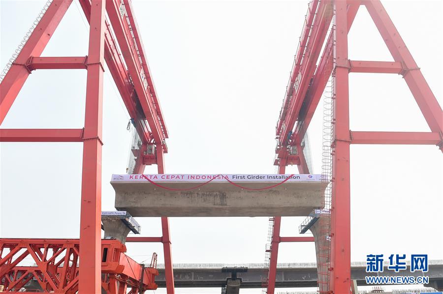 9月30日,雅萬(wàn)高鐵全線首榀箱梁成功架設(shè)。 印度尼西亞雅萬(wàn)高鐵全線首榀箱梁9月30日架設(shè)成功,高鐵建設(shè)繼續(xù)穩(wěn)步推進(jìn)。雅萬(wàn)高鐵全長(zhǎng)142公里,最高設(shè)計(jì)時(shí)速350公里,2018年6月全面開(kāi)工,總工期為36個(gè)月,今年是施工建設(shè)全面提速的關(guān)鍵年。建成通車后,雅加達(dá)至萬(wàn)隆的時(shí)間將由現(xiàn)在的3個(gè)多小時(shí)縮短至40分鐘。 新華社記者 杜宇 攝