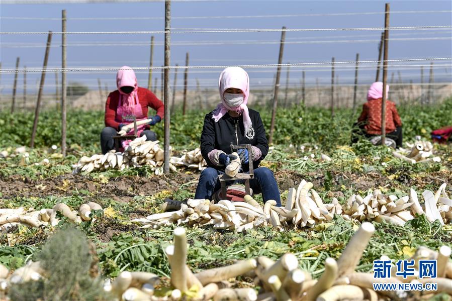 近日,寧夏吳忠市紅寺堡區(qū)馬渠生態(tài)移民安置區(qū)的7000畝蘿卜喜獲豐收,農民在田間地頭拔蘿卜、切蘿卜、曬蘿卜,一片忙碌。 新華社記者 馮開華 攝