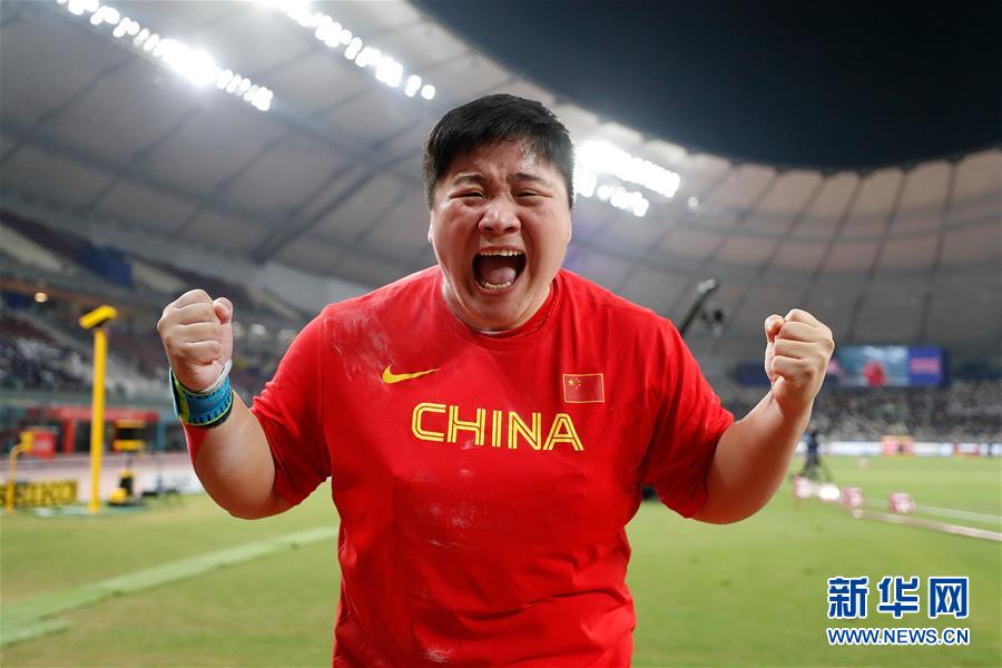 當日,在卡塔爾多哈舉行的2019國際田聯世界田徑錦標賽女子鉛球決賽中,衛(wèi)冕冠軍、中國選手鞏立姣以19米55的成績奪得冠軍。 新華社記者王麗莉攝