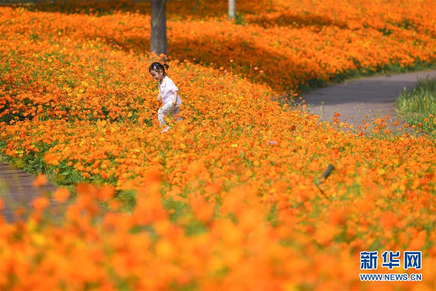 10月9日,小朋友在四季花海城市公園游玩。 秋日時節(jié),位于安徽省合肥市的四季花海城市公園花香四溢,色彩繽紛,成為游客和市民休閑游玩的好去處。 新華社記者 張端 攝