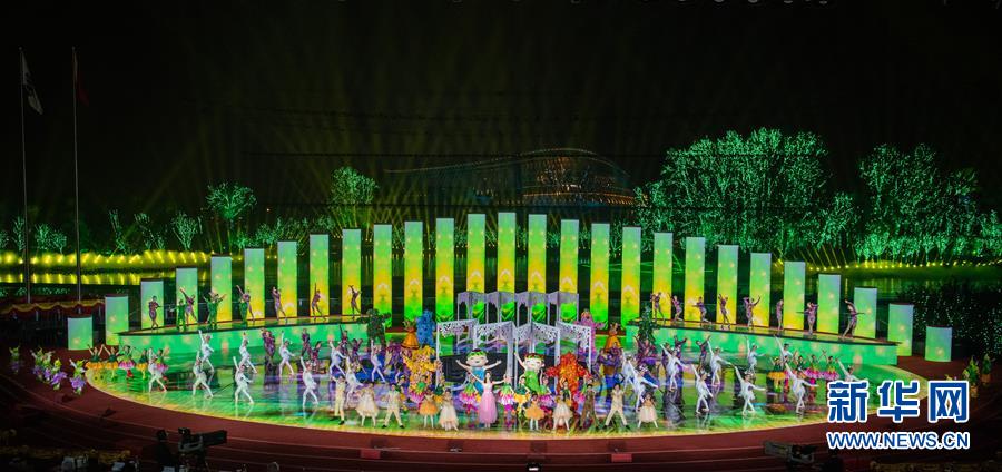 10月9日,演員在節(jié)目“綠野漫游”中表演。當(dāng)日,2019年中國北京世界園藝博覽會(huì)閉幕式在北京舉行。新華社記者翟健嵐攝