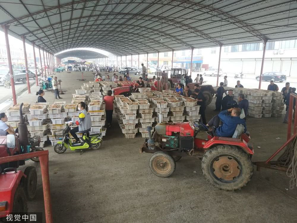2019年9月13日,農(nóng)歷八月十五中秋節(jié),山東濱州沾化區(qū)魯北海產(chǎn)品批發(fā)市場,村民正在分揀貨物。