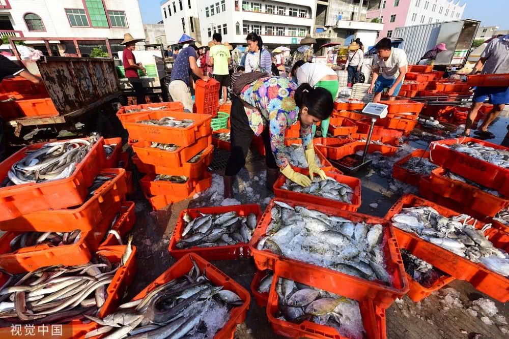 一筐筐的刀魚、鯧魚、鲅魚,很快被運輸?shù)脚R近的興海門海鮮批發(fā)市場,市場里人頭攢動、熙熙攘攘,就像趕年集一般,一派購銷兩旺的景象。