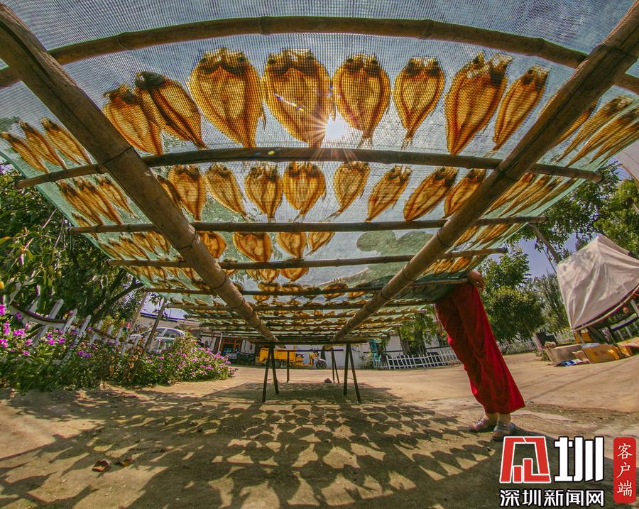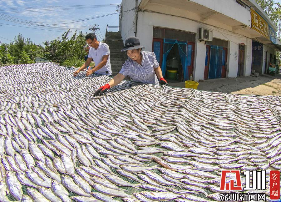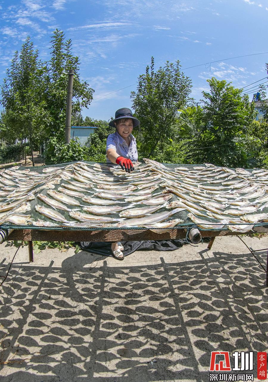 岸上,家家戶戶都在忙著晾曬剛捕撈上來的毛刀魚、小白魚和武昌魚。