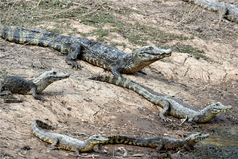 當(dāng)?shù)貢r(shí)間2016年6月24日,巴拉圭General Diaz,巴拉圭與阿根廷邊境遭遇嚴(yán)重干旱,皮科馬約河河水枯竭,凱門(mén)鱷在水塘內(nèi)。