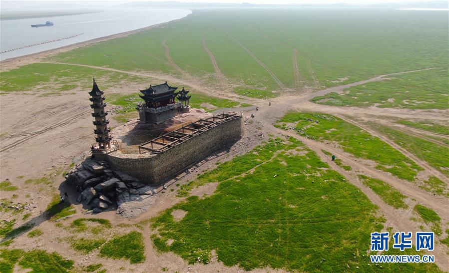 中國最大淡水湖鄱陽湖水位下降 落星墩重現(xiàn)天日