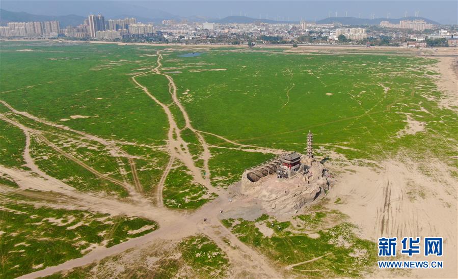 中國最大淡水湖鄱陽湖水位下降 落星墩重現(xiàn)天日