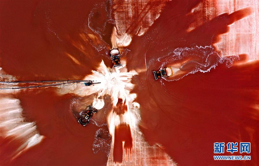 日前,山東省無(wú)棣縣境內(nèi)的魯北鹽場(chǎng)進(jìn)入海鹽收獲季節(jié),星羅棋布的鹽池將大地裝扮得繽紛如畫(huà)。無(wú)棣縣位于山東省北部渤海之濱,全縣擁有鹽田365萬(wàn)公畝,是我國(guó)重要的海鹽生產(chǎn)基地。據(jù)無(wú)棣縣工信局統(tǒng)計(jì),今年1-9月份,當(dāng)?shù)卦}產(chǎn)量111.7萬(wàn)噸。