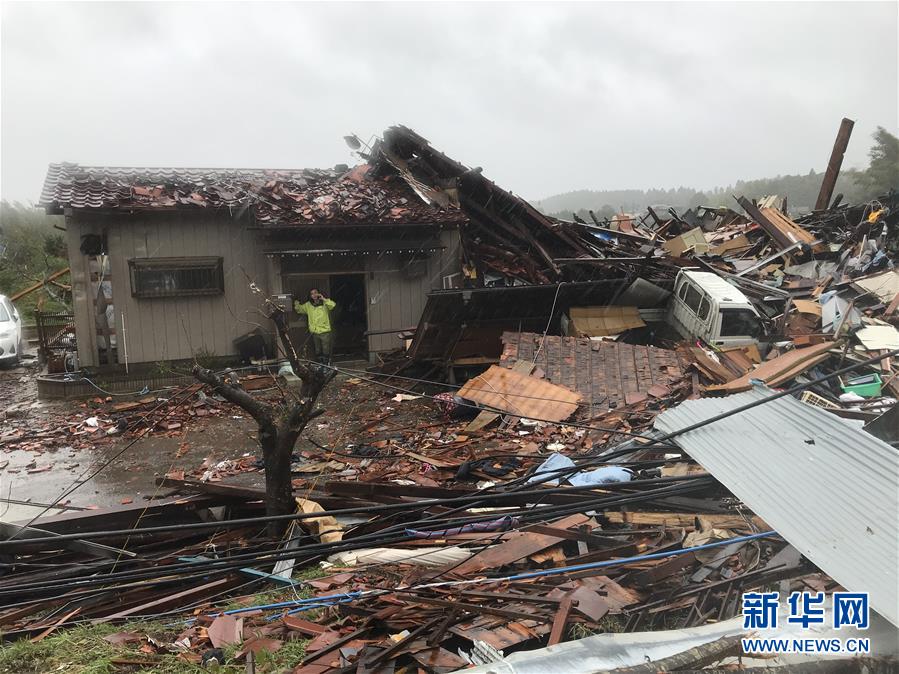 10月12日,在日本千葉縣市原市,建筑物遭龍卷風襲擊后被損毀。新華社記者 鄧敏 攝