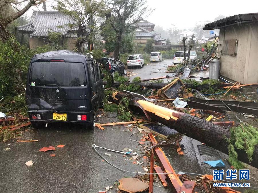 10月12日,在日本千葉縣市原市,建筑物和車輛遭龍卷風(fēng)襲擊后被損毀。新華社記者 鄧敏 攝