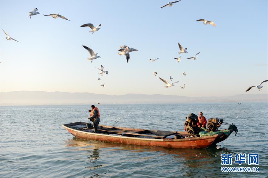 新疆博湖縣的漁民在博斯騰湖捕魚(yú)(10月12日攝)。入秋以來(lái),新疆博斯騰湖碧波蕩漾,美景如畫(huà),吸引各地游客前來(lái)游玩。新華社記者丁磊 攝