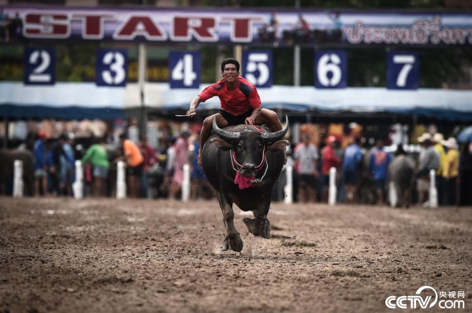 央視網消息:當地時間2019年10月12日,泰國春武里舉行一年一度的水牛賽跑,選手騎牛狂奔。視覺中國