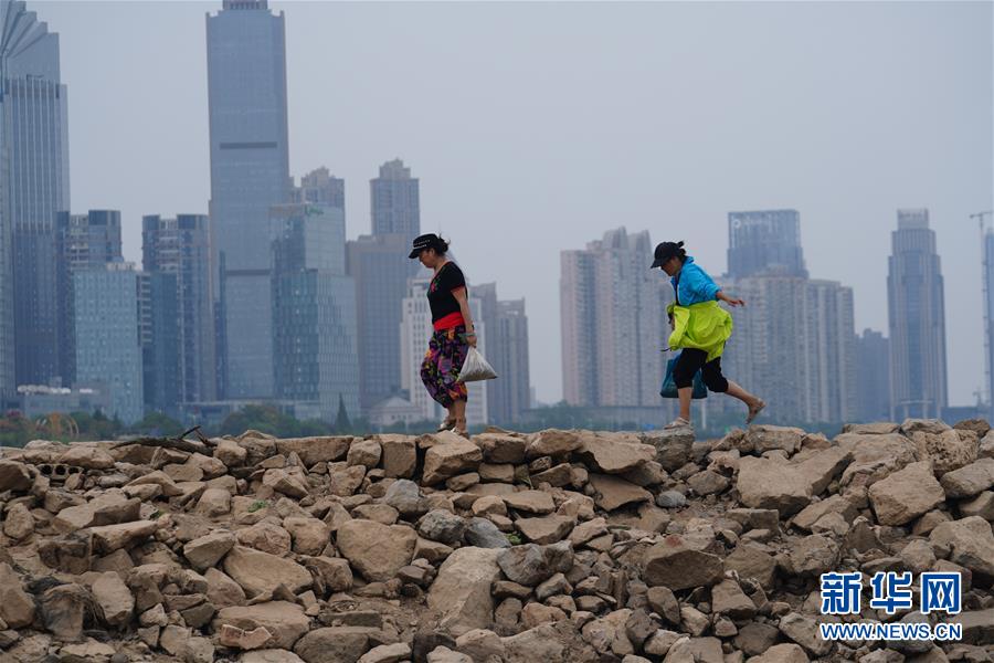 10月14日,兩名女士走在贛江南昌段露出的河堤上。當日16時,江西省氣候中心發(fā)布干旱橙色預警。由于連日少雨,贛江江西南昌段水位降至11.57米,大片沙洲露出水面。據江西省氣象部門統(tǒng)計,7月下旬到10月初,江西省平均降雨量96毫米,比多年均值偏少約七成。據介紹,江西省水利部門正在進行科學調度,積極做好引水防旱抗旱工作,其中南昌、九江、上饒、景德鎮(zhèn)4個設區(qū)市的13個縣(市、區(qū))共引水9717.6萬立方米,保障灌溉面積123萬余畝。 新華社記者 周密 攝