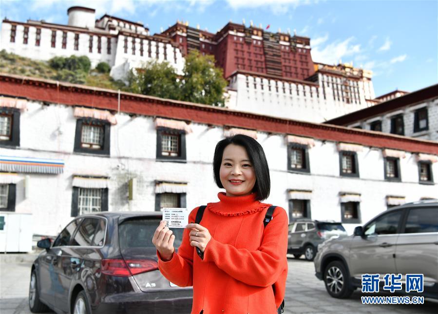 10月15日,從西寧來的游客張書培展示她用身份證換取的布達(dá)拉宮散客免費(fèi)預(yù)約券。 根據(jù)西藏自治區(qū)《第三輪“冬游西藏”市場促進(jìn)優(yōu)惠政策》,第三輪“冬游西藏”時段為2019年10月15日至2020年3月15日,共計(jì)5個月。除寺廟景區(qū)外,全區(qū)國有3A級(含3A級)以上景區(qū)免費(fèi)游覽,國有3A級以下和非國有A級景區(qū)門票在淡季價格基礎(chǔ)上減半。 新華社記者 李鑫 攝