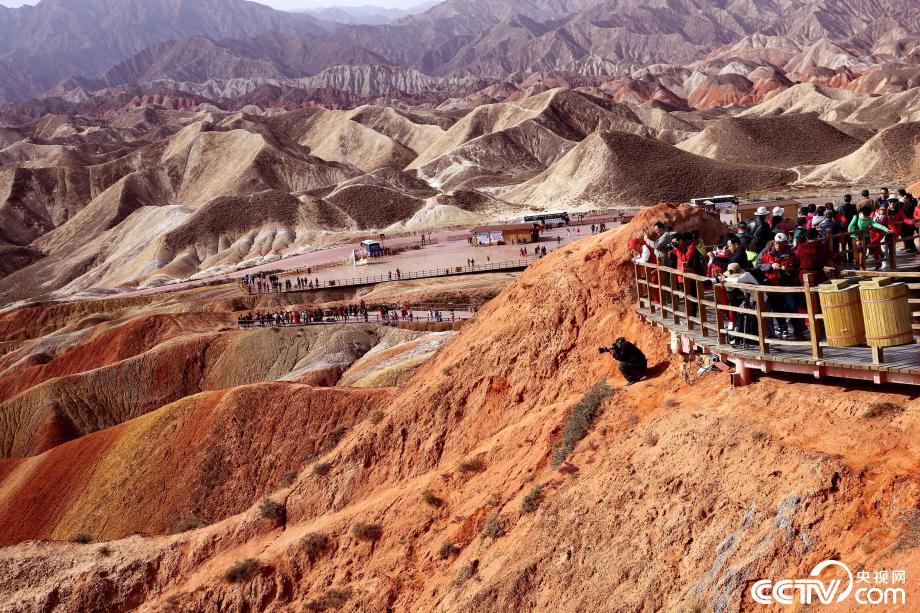 央視網(wǎng)消息:2019年10月15日,金秋時節(jié),位于甘肅省張掖市臨澤縣的七彩丹霞景區(qū)進入旅游旺季,吸引眾多游人紛至沓來。張掖七彩丹霞景區(qū),分布面積約50公里,是中國北方干旱地區(qū)發(fā)育最典型的丹霞地貌。在方圓數(shù)十平方公里的范圍內(nèi),隨處可見有紅、黃、橙、綠、白等多種鮮艷的色塊或線條,把一座座山峰,一條條溝壑,裝點成一幅幅絢麗多姿、燦爛奪目的畫圖。圖片來源:視覺中國