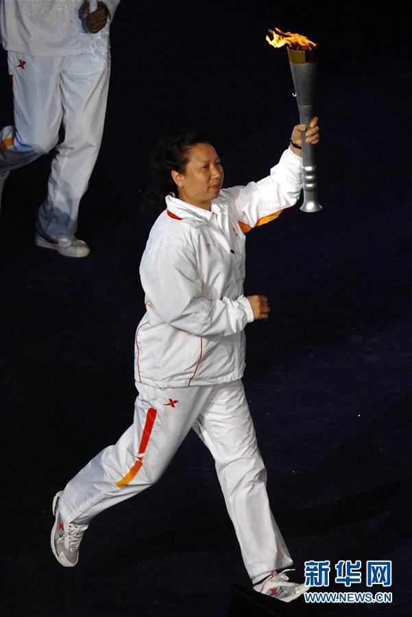 圖為韓愛(ài)萍在武漢舉行的第六屆全國(guó)城市運(yùn)動(dòng)會(huì)開(kāi)幕式上傳遞火炬(2007年10月25日攝)。新華社記者王頌攝