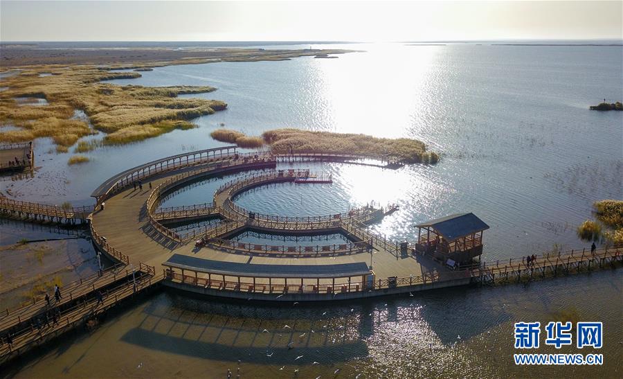 這是10月17日無人機(jī)拍攝的居延海風(fēng)光。新華社記者 彭源 攝
