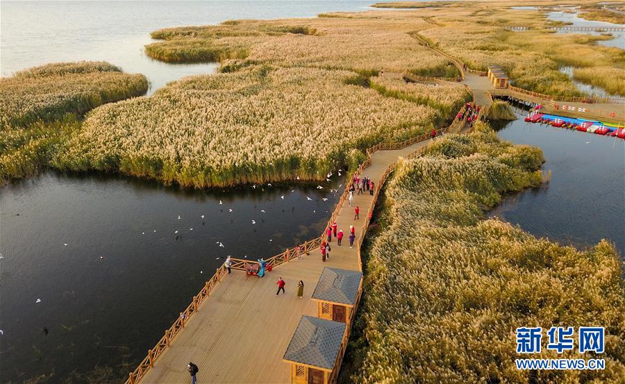 這是10月17日無(wú)人機(jī)拍攝的居延海風(fēng)光。新華社記者 彭源 攝