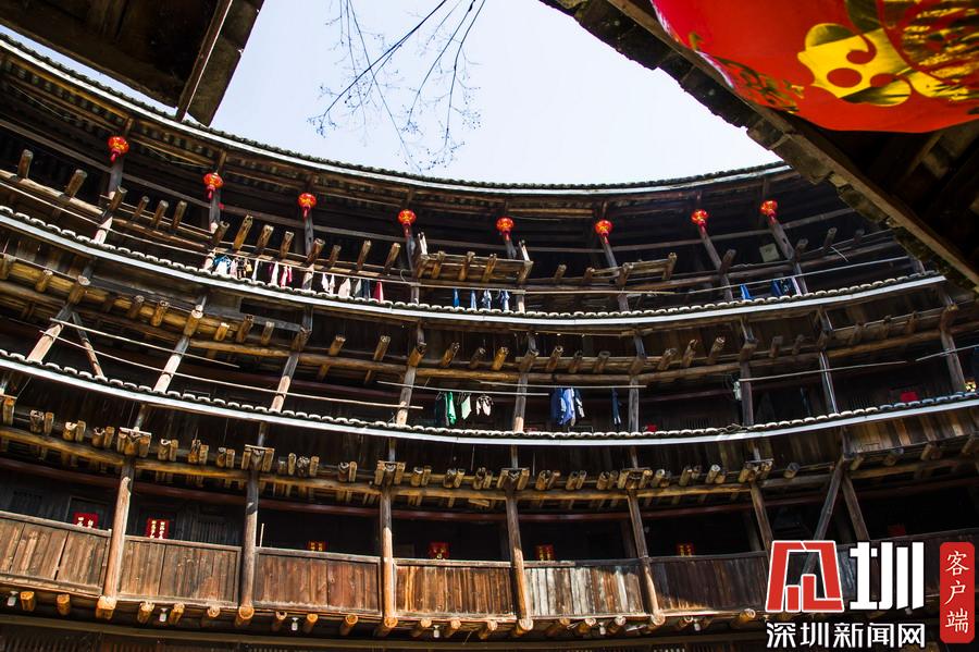 承啟樓高四層,四圈上下400余間,“民居”系列郵票中福建民居就以承啟樓為圖案,進(jìn)入土樓可以欣賞到典型的土家風(fēng)情。李酮攝