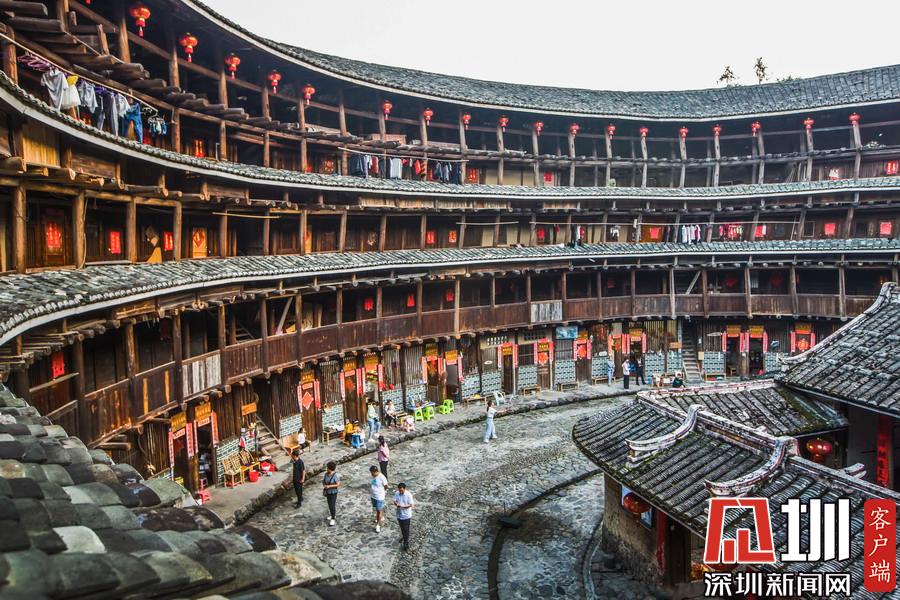 這個村的土樓沿河而建,并非常均勻地分布在兩岸,土樓形態(tài)豐富,有常見的方形、圓形土樓,還有圍裙形、曲尺形土樓,最獨特的是還有浙杭水鄉(xiāng)模式單院式土木、磚木結(jié)構(gòu)的吊角樓,形成大樓帶小樓、高低錯落布局的奇妙景觀。