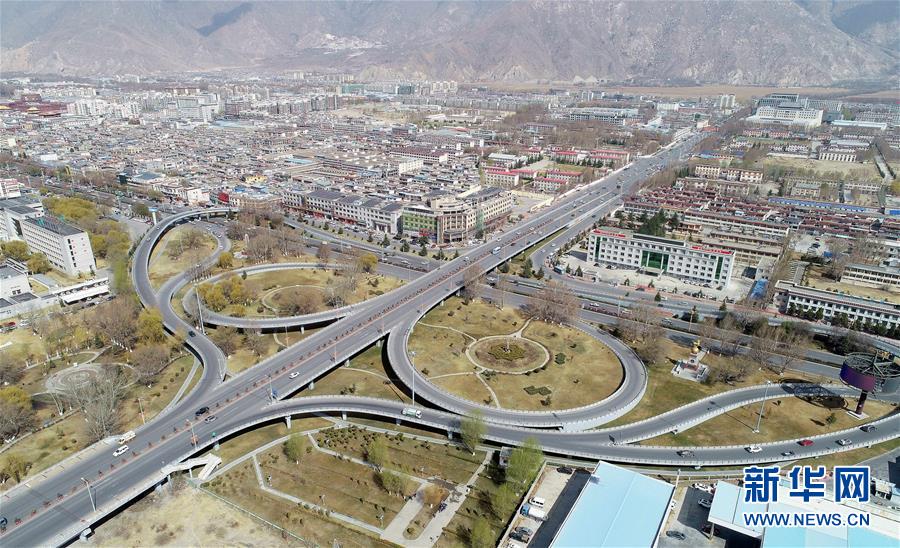 這是拉薩市內(nèi)公路(4月3日無人機拍攝)。 新華社記者 普布扎西 攝
