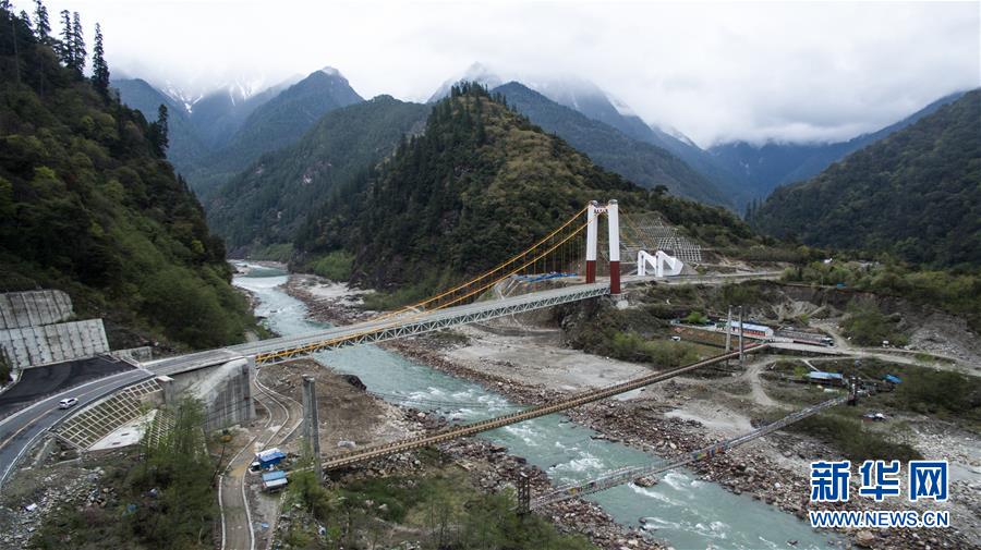 這是三個時期的林芝易貢大橋(2016年3月29日無人機(jī)拍攝)。 新華社記者 普布扎西 攝