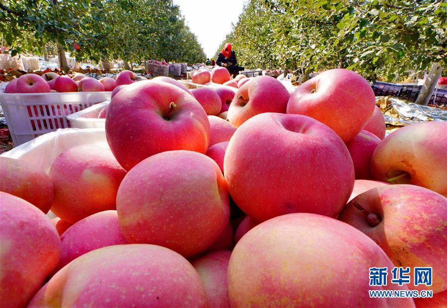 10月25日,灤州市王店子鎮(zhèn)的果民在分揀剛采摘的蘋果。新華社記者楊世堯攝