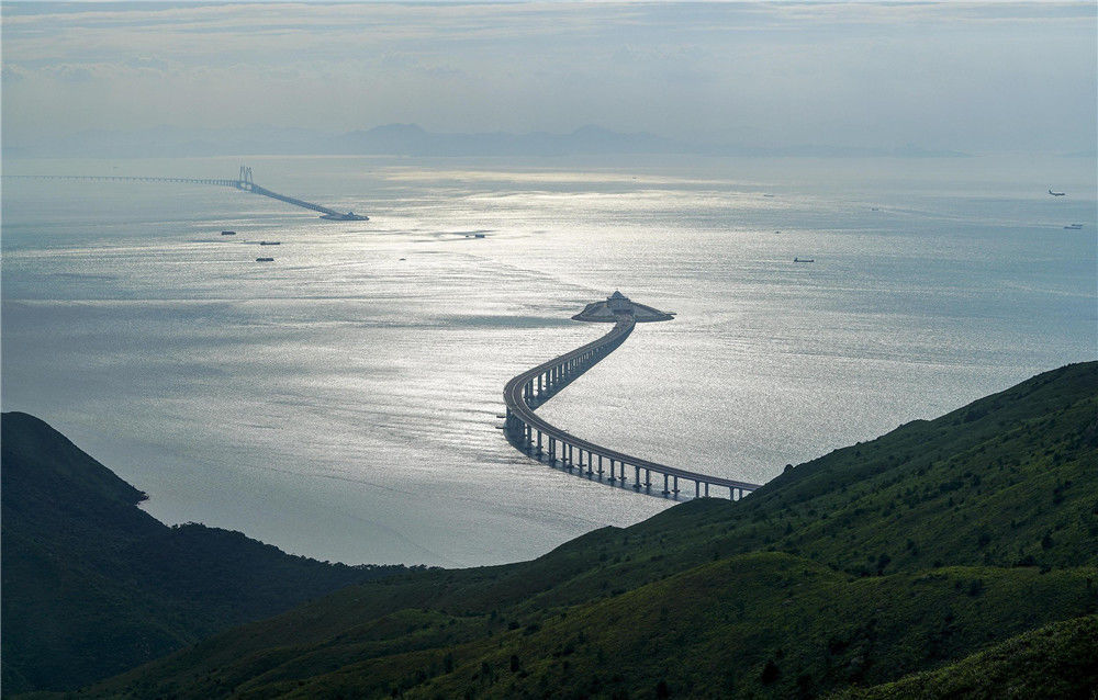2018年7月17日,香港,從香港大嶼山遠(yuǎn)眺港珠澳大橋。港珠澳大橋開通在即,香港跨境巴士業(yè)界2018年9月12日表示,港珠澳大橋?qū)榛浉郯拇鬄硡^(qū)創(chuàng)造大量跨境巴士的旅客需求,整個行業(yè)將迎來“飛躍式發(fā)展”。張煒(香港分社)/中新社/視覺中國