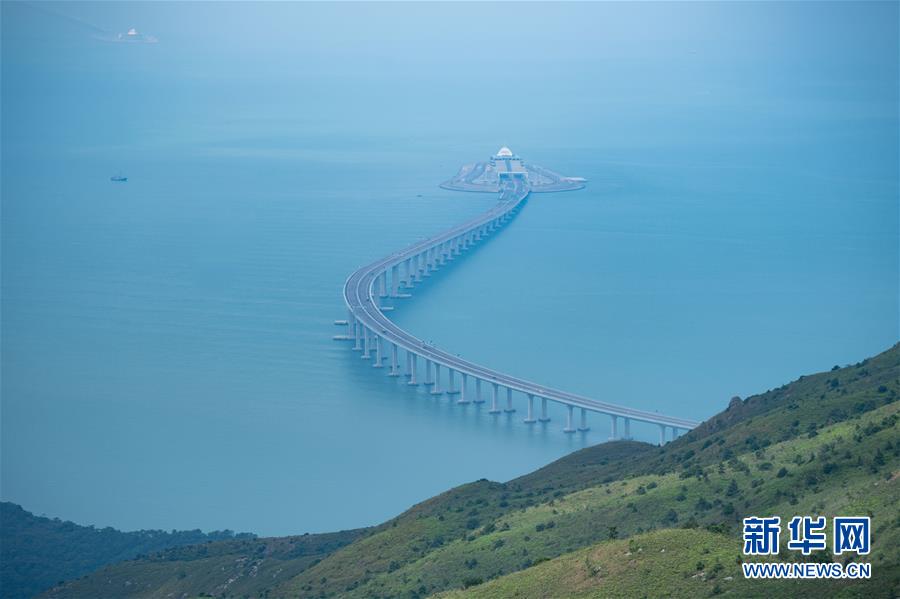 10月24日午后,車輛駛往港珠澳大橋東人工島。2018年10月23日,港珠澳大橋正式開通。新華社記者張金加攝