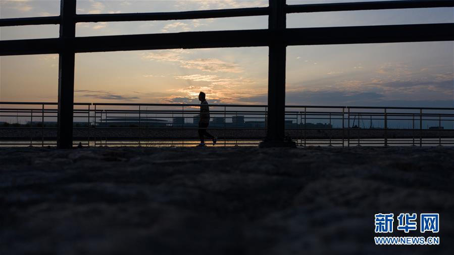 10月24日,晨起的澳門市民在海邊跑步。2018年10月23日,港珠澳大橋正式開通。新華社記者張金加攝