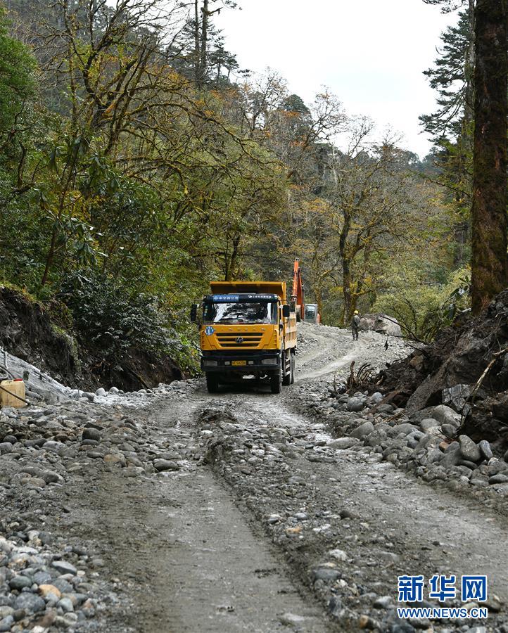 工程車在派墨農(nóng)村公路施工現(xiàn)場作業(yè)(10月24日攝)。新華社記者李鑫攝