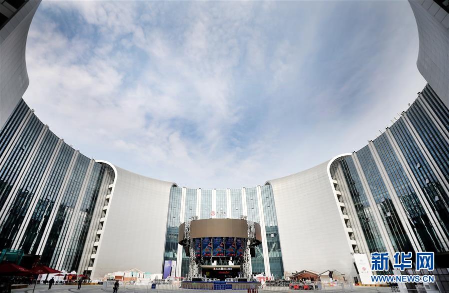 這是10月25日拍攝的正在進(jìn)行裝飾施工的國(guó)家會(huì)展中心(上海)南廣場(chǎng)。 新華社記者 方喆攝