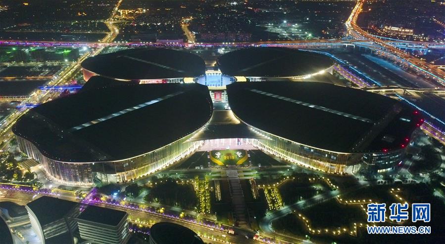 2019年11月5日,第二屆中國(guó)國(guó)際進(jìn)口博覽會(huì)將在上海開幕。夜幕下的國(guó)家會(huì)展中心(上海)燈光璀璨,流光溢彩,靜待八方賓客。新華社記者丁汀攝