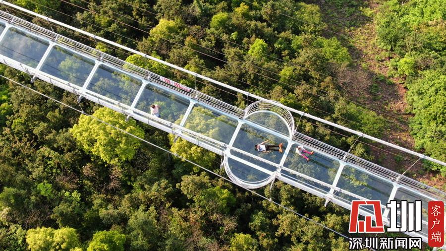2019年4月24日,湖南張家界大峽谷玻璃橋上,游客們擺出各種姿勢拍照。剛開始,游客們在短暫的恐懼之后,隨之而來的是滿滿的興奮,男女老少紛紛在這座懸在300多米高空中的全透明玻璃橋上不停拍照,從一開始走上橋緊張的不敢踩在玻璃上,到最后在玻璃橋上的各種躺和趴,各種姿勢各種創(chuàng)意各種拍攝,游客們完全忘我地開心游玩。張家界大峽谷玻璃橋,是世界首座斜拉式高山峽谷玻璃橋,玻璃橋全長430米,寬6米,橋身距離谷底垂直落差300米,大橋表面由99塊透明玻璃鋪設而成,整個工程無鋼筋混凝土橋墩。