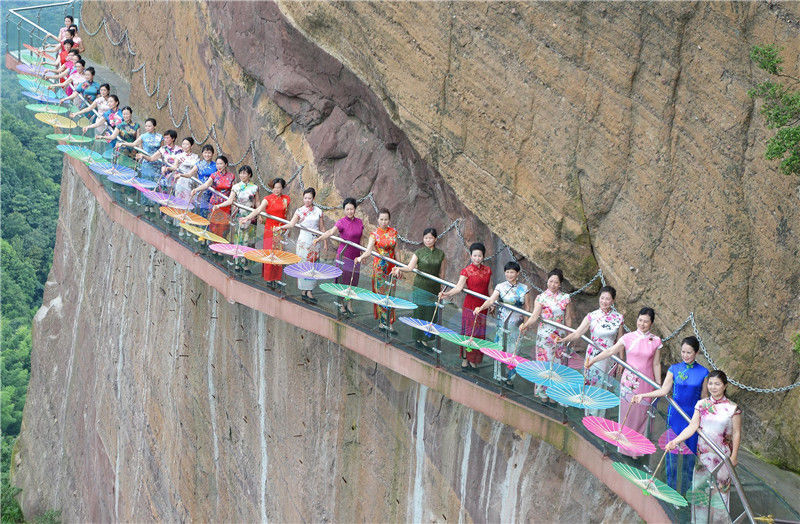 2017年7月1日,江西省弋陽國家級龜峰5A景區(qū)舉行了一場旗袍秀。艾世民/視覺中國