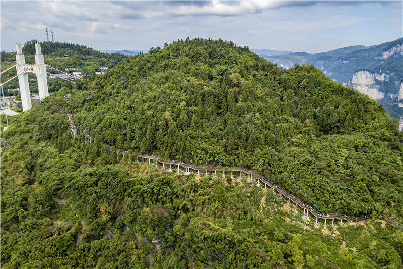2018年10月4日,游客正在參觀湖南省湘西土家族苗族自治州吉首市矮寨景區(qū)懸崖棧道。劉振軍/視覺中國(guó)