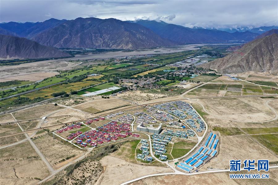 鳥瞰曲水縣才納鄉(xiāng)四季吉祥村(8月8日無人機(jī)拍攝)。新華社記者普布扎西攝