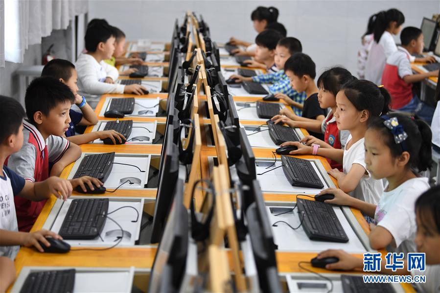 9月3日,金寨縣希望小學(xué)南校區(qū)學(xué)生在上計算機課。新華社記者劉軍喜攝