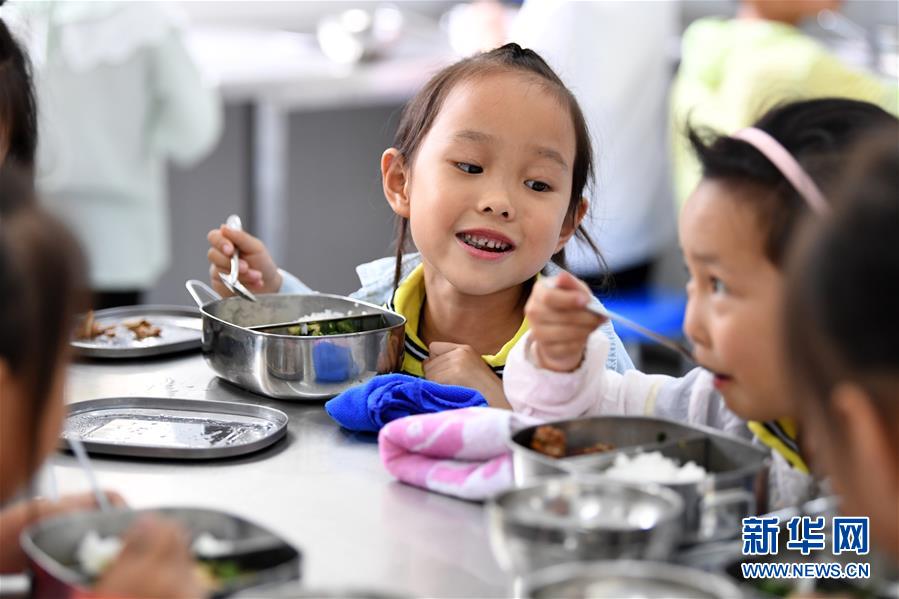 9月3日,金寨縣希望小學(xué)學(xué)生在吃午餐。新華社記者劉軍喜攝