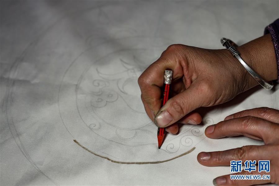 10月28日,楊芳在設計蠟染圖案。新華社記者 歐東衢 攝