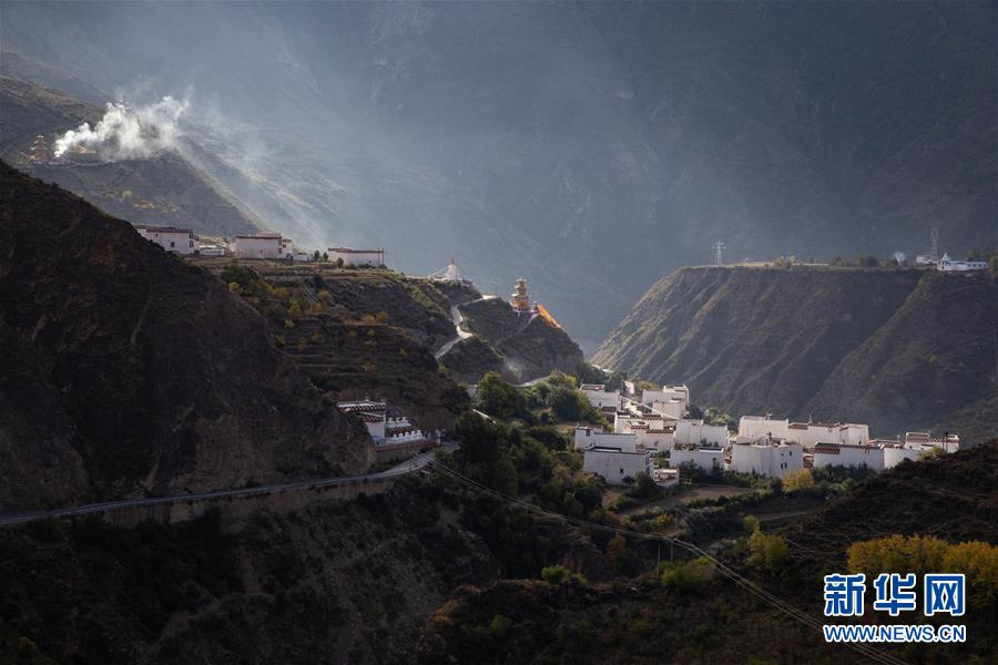 10月30日拍攝的鄉(xiāng)城縣碩曲河谷青麥鄉(xiāng)段藏鄉(xiāng)田園。新華社記者江宏景攝