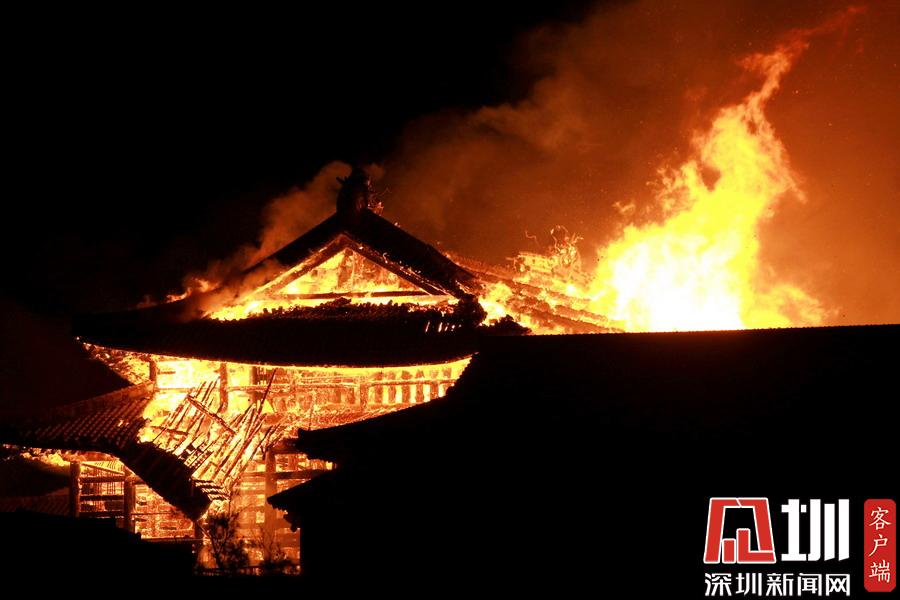 當?shù)貢r間2019年10月31日,日本沖繩縣那霸市,世界文化遺產、位于日本沖繩縣那霸市的首里城31日凌晨突發(fā)火災,那霸消防局說,他們在當?shù)貢r間凌晨2點40分左右接到緊急電話報告城堡發(fā)生火災。