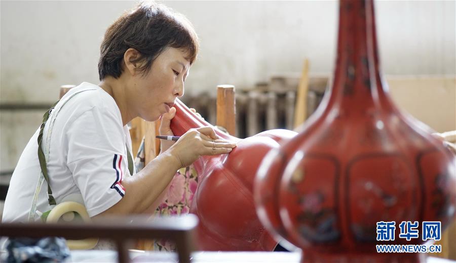 北京金漆鑲嵌有限責(zé)任公司的技師在制作漆藝瓶(10月31日攝)。新華社記者李欣攝