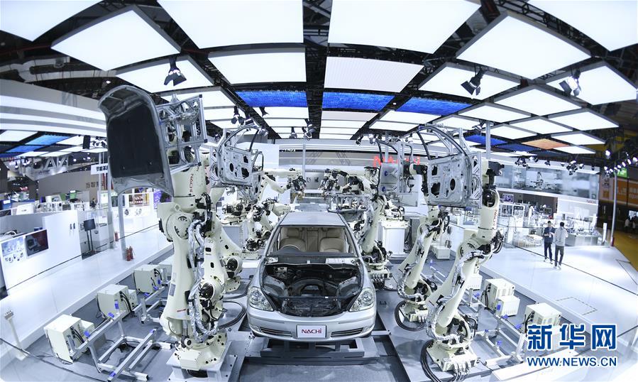 11月5日在第二屆進博會裝備展區(qū)日本那智不二越公司展臺拍攝的超高速點焊SRA系列機器人。當(dāng)日,第二屆中國國際進口博覽會在上海國家會展中心開幕。新華社記者王鵬攝